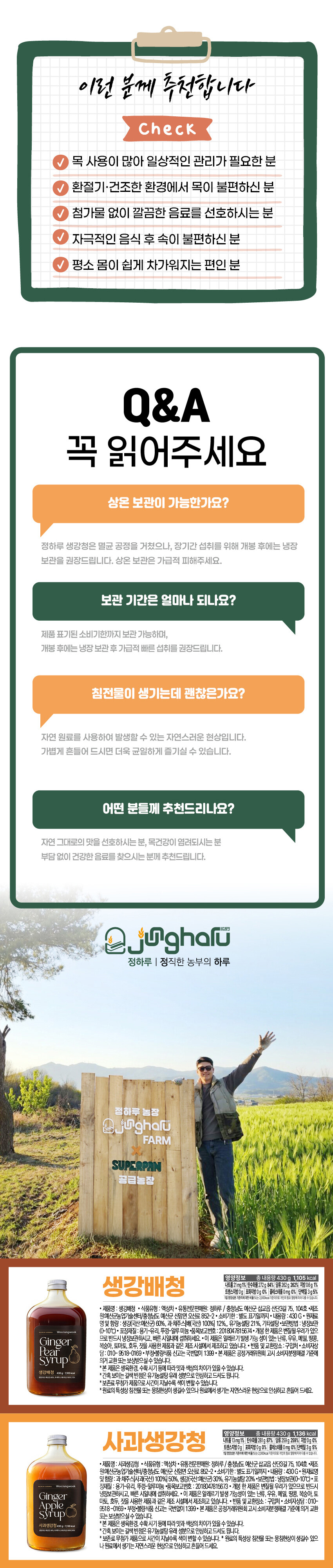 우정욱 레시피 생강배청 1병 (430g)